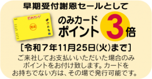 ご来社にてお支払いいただいた場合のみ【のみポイント】をお付けしております